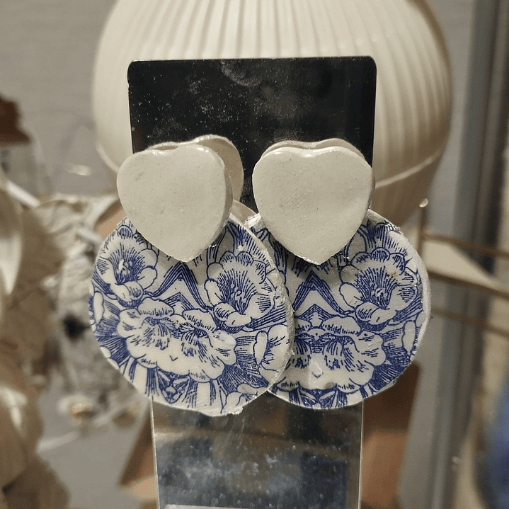 Brincos artesanais inspirados nos azulejos portugueses, com um toque delicado em forma de coração.